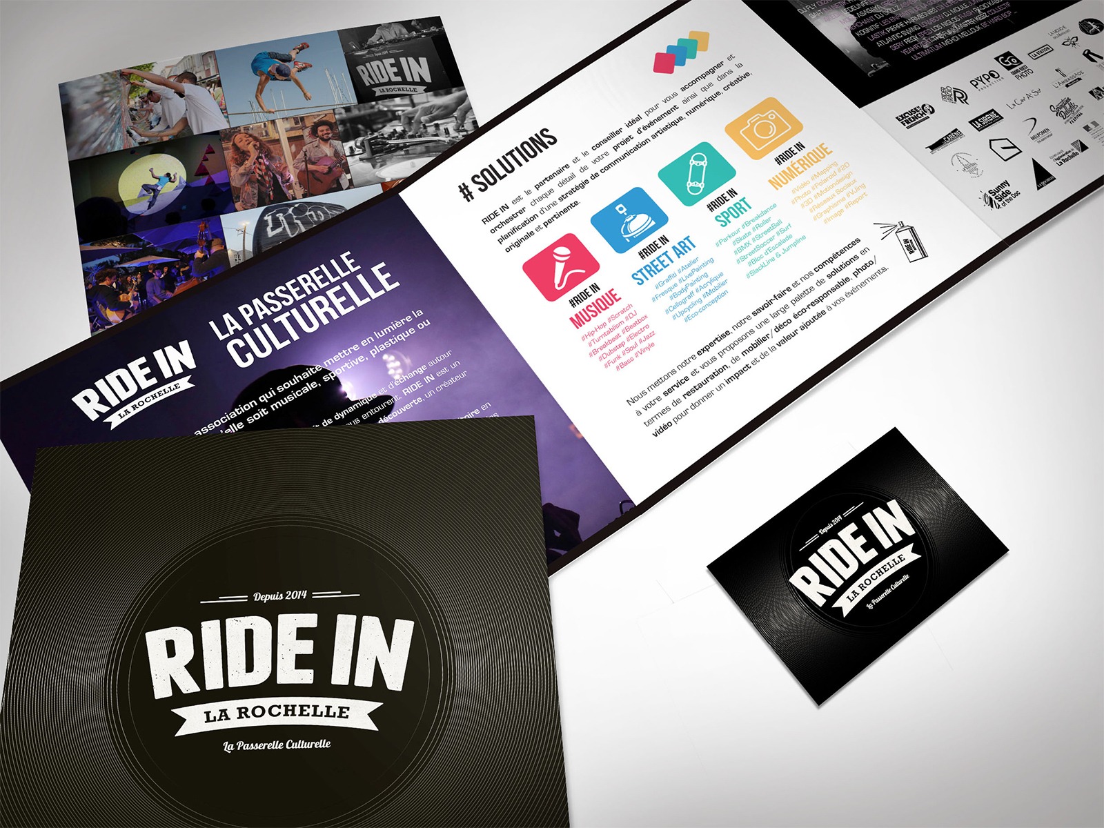 Dans le cadre de plusieurs collaborations, j’ai réalisé pour l’association RIDE-IN les affiches et flyers des principaux événements, ainsi que la plaquette de présentation de l’association.